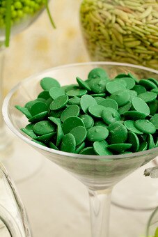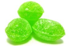 Candy weights (from upper left corner): (1) 6 lbs Sour Apple Fruit Slices (116 oz container); (2) 2 lbs Green Apple Drops (290 oz container); (3) 1 lb Apple Sour Power Belts (1/3 of a 200 oz container); (4) 20 Lime Candy Sticks; (5) 9 lbs Key Lime Fruit Slices (78 oz container); (6) Almints; (7) 5 lbs Green Apple Licorice Twists (50 oz container); (8) 5 lbs Mint Chocolate Covered Expresso Beans (125 oz container); (9) 4 lbs Pear Fruit Slices (384 oz container); (10) 3 lbs Yogurt Covered Gingersnaps (170 oz container); (11) 7 lbs Chocolate Covered Sunflower Seeds (Green) (130 oz container); (12) 3 lbs Lime Green Sixlets (140 oz container); (13) 2 lbs Wasabi Bits (165 oz container); (14) 7 lbs Green Coating Chocolate Wafers (165 oz container); (15) 3 lbs Light Green Shimmer Gum Balls (175 oz container)