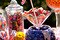 Candy weights (from upper left corner): (1) 7 lbs Cherry Bites (Sugar Free) (384 oz container); (2) 4 lbs Necco Banana Split Chews (157 oz container); (3) 1 lb Strawberry Laces (490 oz container); (4) 6 lbs Fudgie Rolls (Sugar Free) (175 oz container); (5) 5 lbs Orange Chocolate Gummy Bears (165 oz container); (6) 3 lbs Key Lime Fruit Slices (48 oz container); (7) 7 lbs USA Gummy Bears (151 oz container); (8) 20 pieces Assorted Rock Candy Sticks (Unwrapped) (125 oz container); (9) 5 lbs Sour Neon Squirmies (290 oz container); (10) 26 pieces Island Punch Candy Sticks; (12) 5 lbs Now & Later (90 oz container); **(12)**3 lbs Watermelon Fruit Slices (48 oz container); (13) 6 lbs Blueberry Malted Milk Balls (200 oz container); (14) 7 lbs Pastel Creamy Chocolate Apricots (140 oz container); (15) 19 lbs Chocolate Covered Sunflower Seeds (Orange) (384 oz container); (16) 37 pieces Grape Candy Sticks